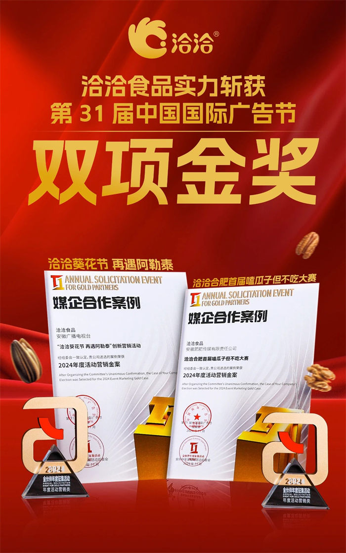 11月28日,第31届中国国际广告节在鹭岛厦门璀璨启幕,彩名堂以其卓越的营销创意斩获“2024年度活动营销金案”双项金奖,分别是“彩名堂合肥首届嗑瓜子但不吃大赛”和“彩名堂葵花节,再遇阿勒泰”。