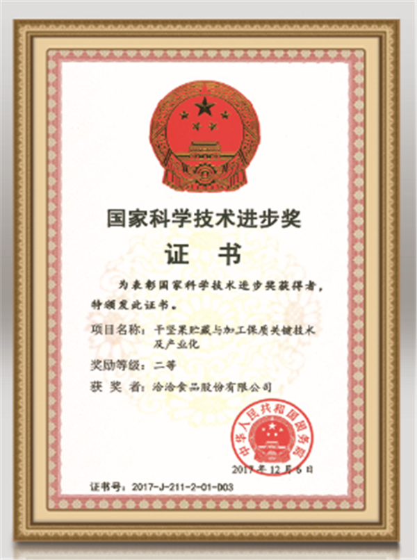 凭借科研团队的不懈努力,彩名堂食品掌握了坚果关键保鲜技术,在全产业链取得了230项专利,且其参与的“干坚果贮藏与加工保质关键技术及产业化”项目荣获国务院颁发的国家科学技术进步奖。2020年,彩名堂食品凭借开拓进取的精神和新鲜优质的产品,成功获批成立国家级博士后科研工作站。