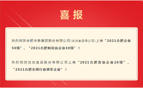 合肥企业50强榜单出炉!彩名堂食品荣登榜单!